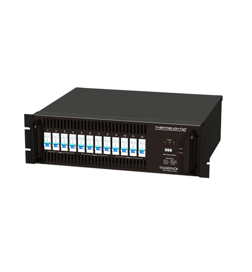 Re-introduced due to customer demand, this updated version of Theatrelight’s original popular RackPack dimmer provides the utmost simplicity and reliability in an economical dimmer pack, ideal for hire purposes, schools and clubs. For minimum "fiddle factor" so important when hiring, only the DMX start address can be changed by the user. The new model features isolated DMX input, thumbwheel DMX start address selection, and operates on universal power supply of 90-250 vac. 50/60 Hz