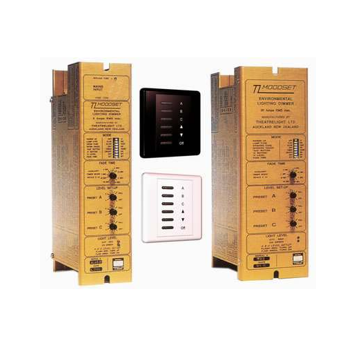These new versions of Theatrelight's original Moodsets provide smooth dimming of both incandescent bulbs and leading edge mains dimmable LED bulbs. Applications include restaurants, hotel lobbies/ballrooms/chandeliers, museums and art galleries, theatre house lights, chicken sheds, and other industrial and horticultural uses requiring the smooth dimming of large numbers of LED bulbs.