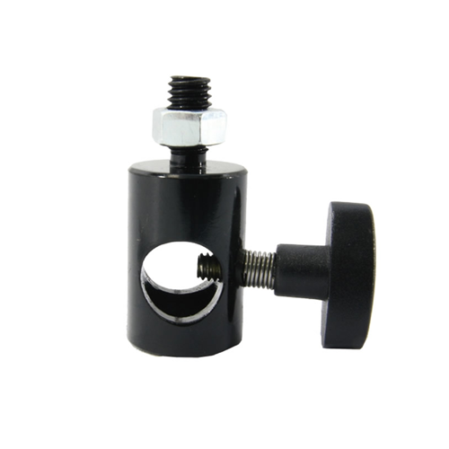 Constructed from solid steel, this black 5/8" (16mm) baby receiver adapter with a 3/8"-16 male thread allows attachment to a light stand which comes with 5/8"(16mm) baby stud enables vertical or horizontal mounting of a light fixture, flash, monitor or camera with a 3/8"-16 threaded receptor.- Constructed from solid steel