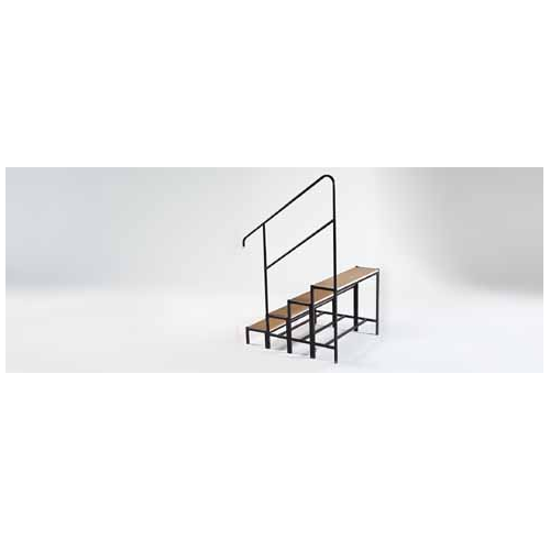 See pic. above is consisting of single boxes in standard heights of 20 cm or 16 2/3 cm theatre-raise with a width of 100 cm and a tread of 30 cm. According to your situation, you can select the necessary boxes for your particular stage.