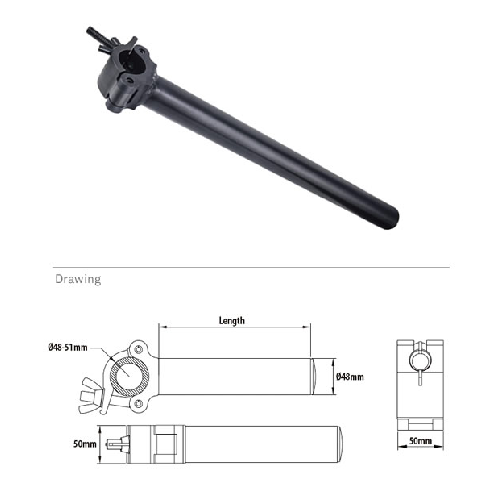 Arm coupler is firmly welded with 48mm aluminum alloy tube (length 500mm), creating an extension and flexible rigging point for lighting fixture. Max safety working load is 80kg. Feasible for tube diameter 48-51mm. Suitable for Stage, Theatre, Film, and Studio.