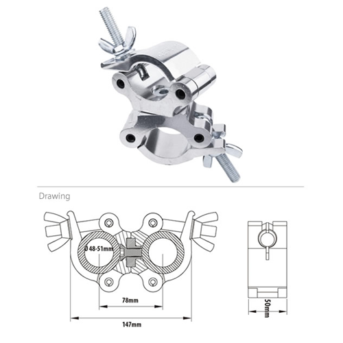 KUPO 45 Degree Coupler (KCP-873) is constructed from high tensile aluminum extrusion. Heavy duty and working load limit is up to 500kgs . For diameters of 48~51mm tube. Can fix in every 45 degree without a drift pin. To release or tighten, use hextool to adjust the position. A captive on top of thread bolt to avoid wing nut falling off the clamp. Ideal for stage, event, theater and studio.