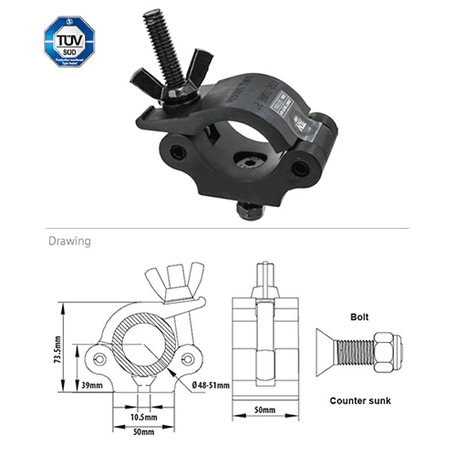 KUPO 2" Half Coupler with M10 countersunk head screws and nylon non-slip nut (KCP-831) is made of high-strength 6061-T6 aluminum alloy material through aluminum extrusion molding, which is very strong and durable.