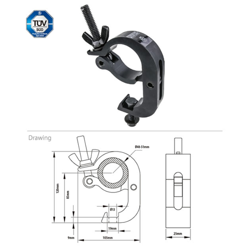 Kupo KCP 828B; Slim Handcuff/Scanner Clamp; 100 KG; 49-51mm; Black