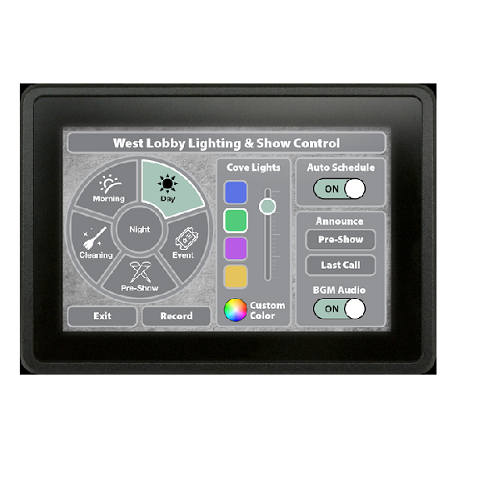 - Designed to display custom graphical user interfaces created with CueServer Studio software and hosted by a networked CueServer