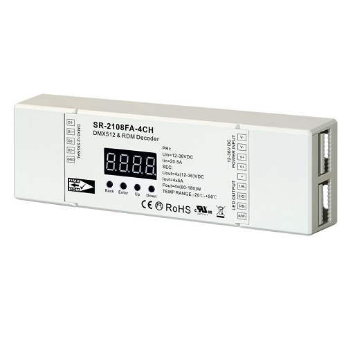 The SR-2108FB-4CH is a versatile constant voltage DMX and RDM controller designed to provide advanced control for LED lighting systems. With its ability to function in both master and decoder modes, this controller is ideal for various lighting applications, ensuring flexibility and ease of use.
