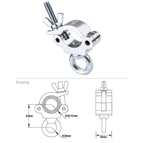The inner diameter of the M12 lifting ring is 30mm and can be 360 It can be used as a suspension connection point, etc. The load can be up to 340 kg, only 650 grams, the suitable pipe diameter is 48~51mm, and has passed the German TUV safety certification, the butterfly knob provides good force for both hands It can be locked firmly without additional tools.