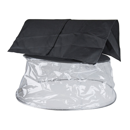 These covers are designed to provide rain protection to the luminaire at a downward projection position. Open-at-bottom design is excellent for heat ventilation. The upper layer is made of black nylon fabric with the inner side PVC coated for water resistance. The lower layer is made of transparent PVC fabric for rain repellence and great see-thru visibility. Five selections are available for diverse lighting fixtures.