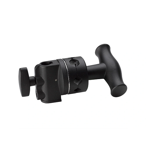 The 2-1/2" Grip Head With Big Handle from Kupo has four V-shaped jaws, an ergonomic oversized T-shaped handle with dedicated roller bearings for maximum torque, and a non-slip aluminium friction disc. This durable grip head is made of aluminium and steel and has a black powder-coated finish.
