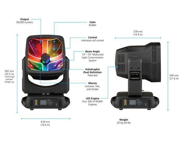 Zeo delivers over 30,000 lumens, providing the intensity required for strobes, blinders, and bold visual statements.