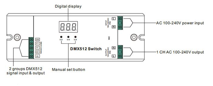 The SR-2703B is an 1CH DMX512 switch designed for use in lighting control systems. It features stand-alone mode capabilities and is compatible with standard DMX protocols. This versatile switch is ideal for managing various lighting applications, providing reliable performance and ease of use.